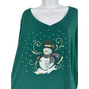 Catherines Womens Petite Long Sleeve V-Neck Snowman Holiday Top Size 2XWP