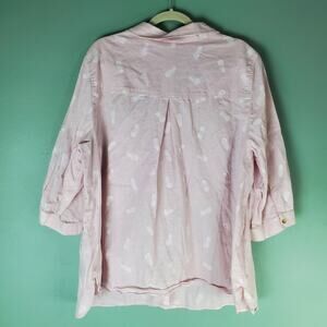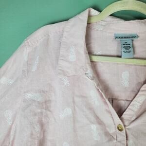 Catherines Womens Pink Pineapple Print No Gap Linen Button Front Shirt Size 2X or 22/24W