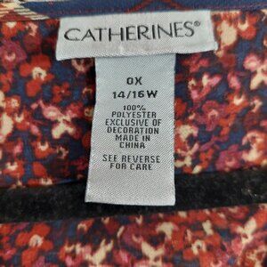 Catherines Women's Plaid Print Georgette Peasant Red Blue Blouse Top Plus Sz OX