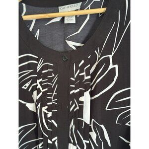 Catherines Women’s Pleated Floral Button Up Top Size 2X Black Long Sleeves Artsy