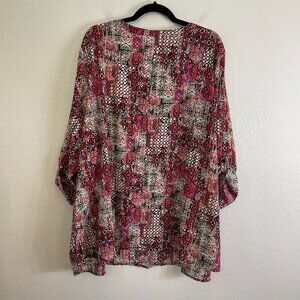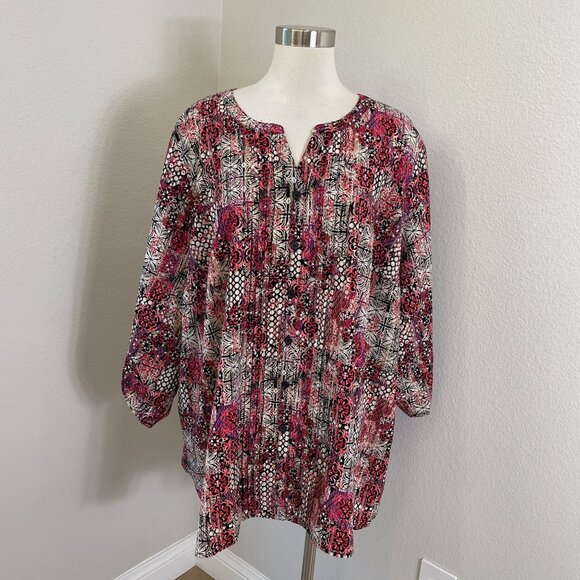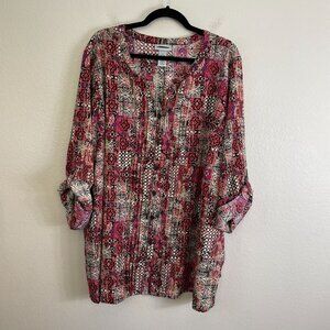 Catherines Womens Plus 3X Button Front Tunic Top Blouse Roll Tab Sleeve Shirt
