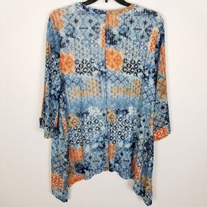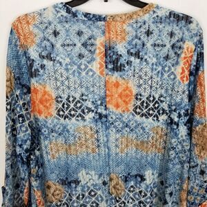 Catherines Women's Plus Mesh Tunic Top Blouse Size 3X Blue Orange Tie Neck Boho