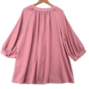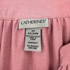 Elegant and versatile, this Catherines blouse in a dusty pink color is crafted from 100% polyester. The button-down design features 3/4 sleeves and a comfortable fit for plus sizes.