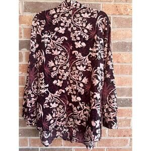 Catherines Women's Purple Floral Stretch Long Sleeve Button Down Shirts Size 2X