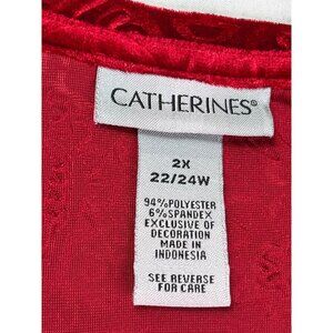 Catherines Womens Red Textured Velvet Top Size 2X 22/24W