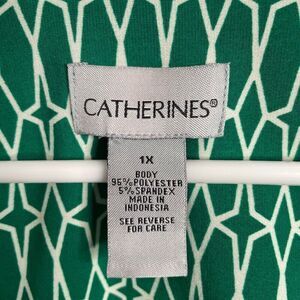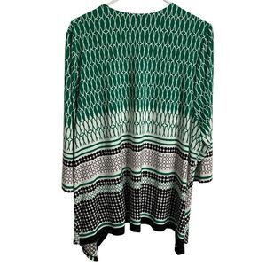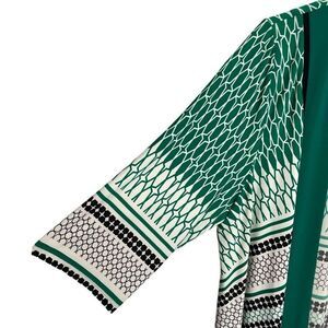 Catherines Womens Retro MCM Print Cardigan 1X Green Stretch Knit Travel Friendly