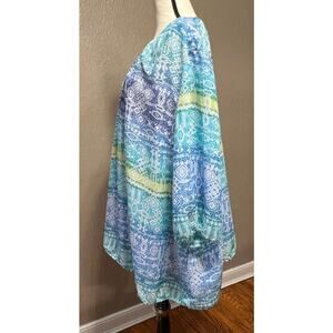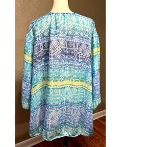 Catherines Women's Santa Fe Peasant Top Tile Blue Semi-Sheer Plus Size 3X /26-28