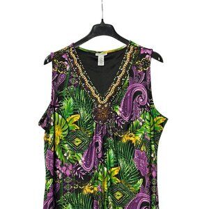 Catherines Womens Sleeveless V-Neck Maxi Dress 3X 26/28W Beaded Tropical Floral Colorful