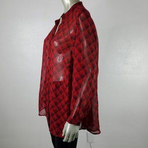 Catherines Womens Top Plus Size 1X Petite Metallic Sheer Button Front V-Neck Red