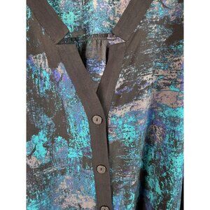 Catherines Women's Top Plus Size 4X Green V-Neck Long Sleeve Button Down Blouse