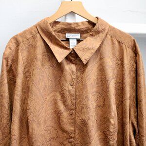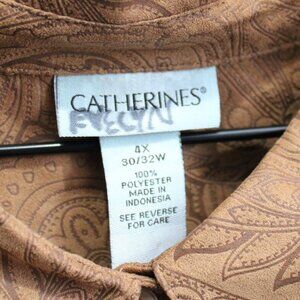 Catherines Women's VTG Y2K Tan Faux Suede Paisley Print Jacket Shacket Size 4X