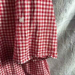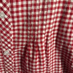 The Catherines button down shirt features a vibrant red and white gingham checkered pattern, offering a relaxed fit with 3/4 sleeves and a notched collar. Crafted for comfort and style, this top is perfect for casual occasions, adding a touch of classic charm to your wardrobe. This plus size top is in great preowned condition roll button sleeve and some pleats