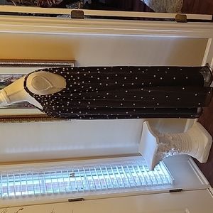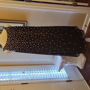 Catherine's sleeveless dress. Brown and white polka dot with gold metallic threads. Rounded neckline with slight gathered bofice. Fully lined in 100% polyester. Pull on style. 97% polyester 2% metallic Size 0X. Approximate measurements 24" from pit to pit. 28" across hips. 45" from shoulder to hem. Excellent pre owned condition. Smoke free and pet free home