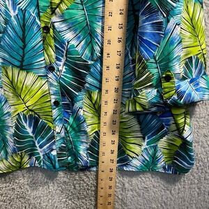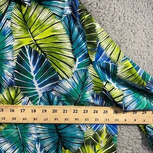 tags beach pool swim vacation resortwear leaves tropical colorful green blue summer button down collared plus size