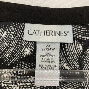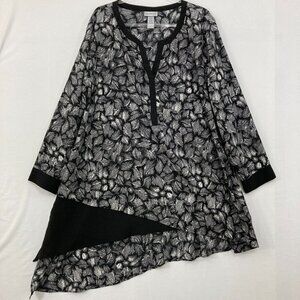 Catherines size 2X Black Gray Geometric Asymmetric Hem Artsy Popover Tunic