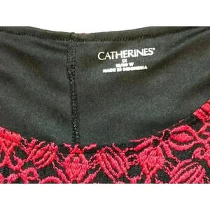 Catherines top 1X scoop neck 3/4 sleeve embroidered red on black