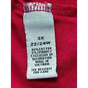 Catherines top tunic 2X v neck 3/4 sleeve red velvet floral brocade trim