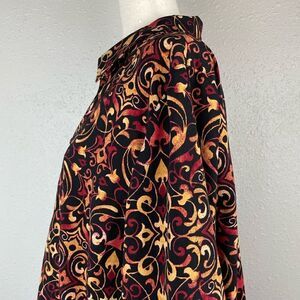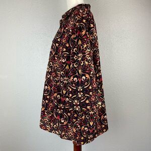 Love the colors and print on this beautiful top. It is in excellent preowned condition and measures 25 inches armpit to armpit laying flat and 26 inches in length from shoulder to hem.