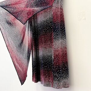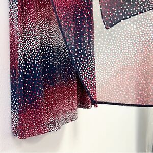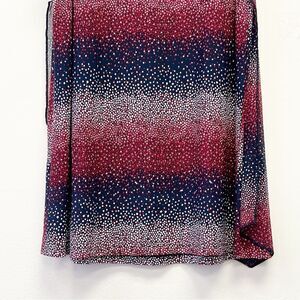 Catherines Plus Mesh Keyhole Polka Dot Gradient Horizontal Stripe Tank, Size 0X (14/16) Abstract polka dot tank top with gradient horizontal stripes. The top features a tiny peekaboo cutout and metal bar detail at the neckline. A lightweight, breezy mesh overlay with a bias cut complements this effortless look. *Size and care label is missing. Based on the Catherine’s size chart, the top is a size 0X, split size 14/16.