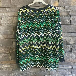Catherines Womens 1X 18/20W Top Blouse Chevron V Neck Green.