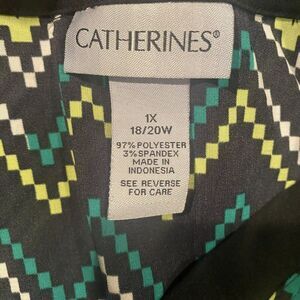 Catherines Womens 1X 18/20W Top Blouse Chevron V Neck Green‎