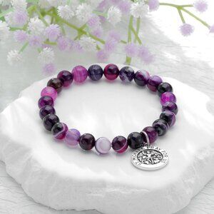 Features: Crafted with natural amethyst beads and a detailed Saint Michael medallion, this bracelet is a beautiful symbol of protection and strength. The elastic design makes for a comfortable, adjustable fit, perfect for daily wear. The deep purple stones add a touch of elegance and positivity, making it ideal for stacking or wearing solo.