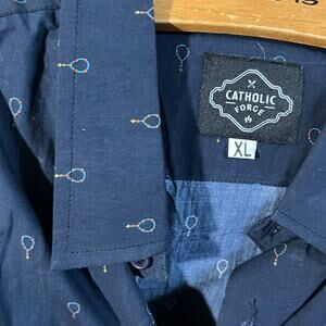 Catholic Forge Men's Navy Blue Rosary Print Button Down Shirt Size XL