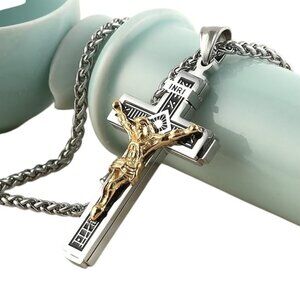 Catholic Holy Jesus Christ on INRI Cross Crucifix Pendant Necklace 22+2 Chain