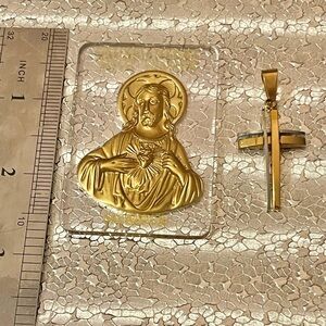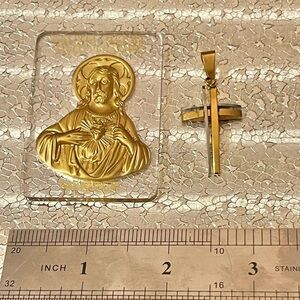 Catholic Religious Set Jesus Sacred Heart Plaque Two-Tone Cross Pendant