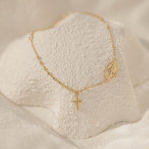 Features: Elegant gold alloy beads with a striking cross pendant, finished with a lobster clasp and a rope chain for a flexible fit. Perfect for daily wear or special occasions, showcasing your faith and style.