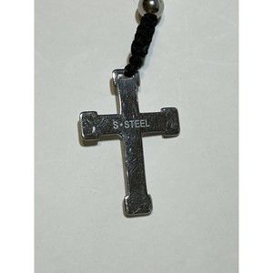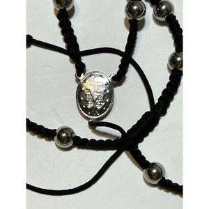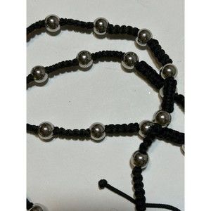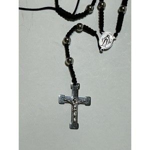 practical and stylish Catholic Rosary, black knotted cord, silver beads and stainless steel crucifix. adjustable some at the top. Very good condition, no damage or wear. Christian prayer tool