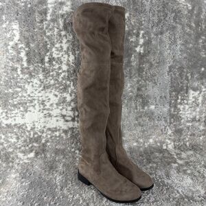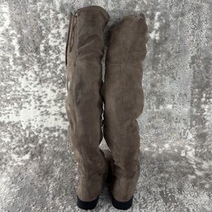 Cathrine Malandrino Sz 9 Faux Suede Over Knee Thigh High Boots Brown Drawstring