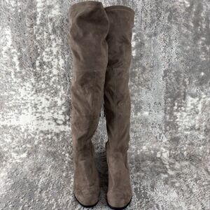 Cathrine Malandrino Sz 9 Faux Suede Over Knee Thigh High Boots Brown Drawstring