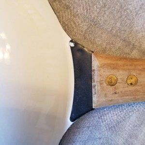It Has A Pour Spout For Easy Use. The Wooden Handle Is In Good Condition And Sturdy.