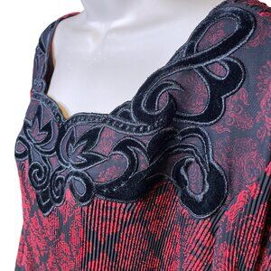 Cathrines Womens Velvet Trim Pleated Black Red Blouse Floral Top Plus Size 4X u