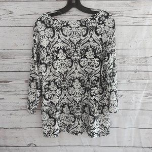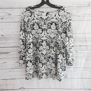 Cathy Women's XL Black/White Textured Stretch 3/4 Sleeve Pullover Top NWOT WS312
