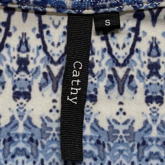 Cathy Blouse Women's Small Blue Multicolor Shimmer 3/4 Sleeve Lightweight NWOT