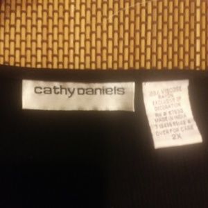 Cathy Daniels 3/4 Sleeve Crinkled Rayon Embroidery Jewel Neck