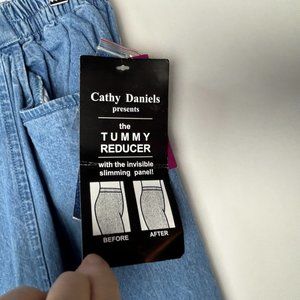 Cathy Daniels 5 Pocket Pull-on Light Blue Jeans Large NWT $42.00. 100% cotton, inner trim 90% nylon, 10% spandex. The Tummy Reducer, 5 pocket pull on jean. Measurements: 16" across waist, 12" rise, 30" inseam, 24" across hips.
