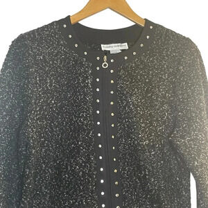 Cathy Daniels Black Gray Tweed Boucle Cardigan Sweater Jacket Full Zip Medium