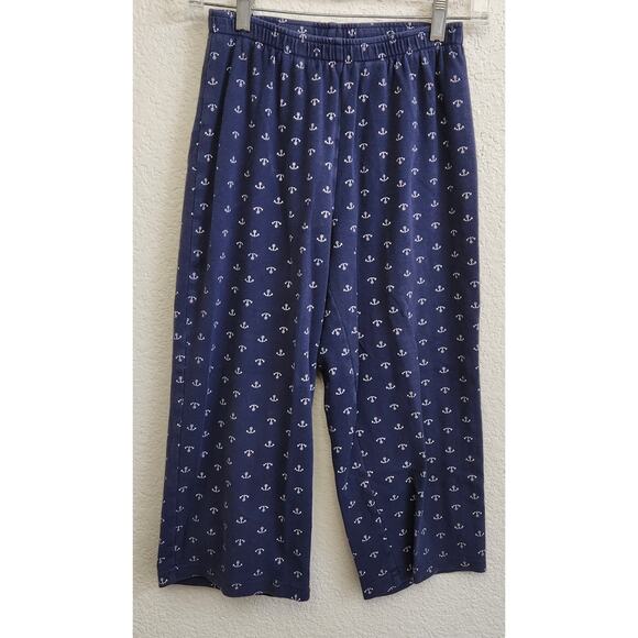 Cathy Daniels Blue Anchor Print Cropped Leggings Small Lightweight Pull On Soft