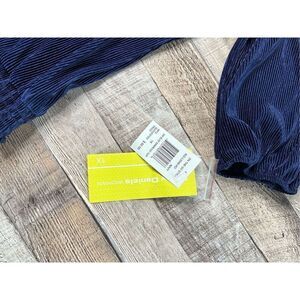 NWT Cathy Daniels Blue Embellished 3/4 Sleeve Blouse Top sz 1X. Gold tone studs surround the neckline adding great details to this elastic hem blouse. 3/4 Sleeves with elastic cuff. 100% Polyester. Hand wash to retain the wrinkled fabric. Item in NEW condition. No known rips, tears, holes, stains or defects. Retails $56