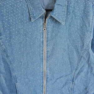 Cathy Daniels Blue Jean Chambray Jacket With Rhinestones. Size XL.