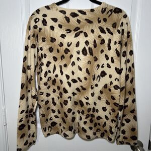 Cathy Daniels Faux Cashmere Leopard Print Crew Neck Pullover Sweater Size Medium