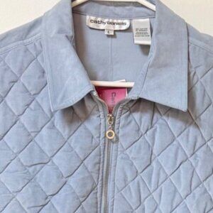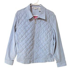 Cathy Daniels Womens Light Blue Quilted Soft Corduroy Zip Front Jacket Size L Lightweight Spring Outerwear