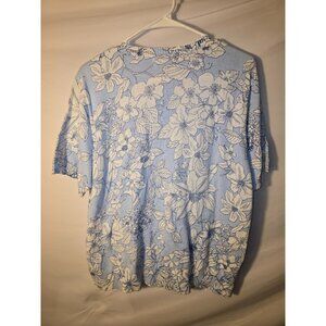 Cathy Daniels Sweet 2Fer Sweater Set Womens Size XL Short Sleeve Blue Floral