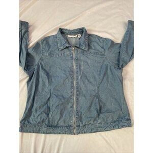 Cathy Daniels Womens 2X Denim Jacket With Rhinestone Accents & Full Zip Front Y2