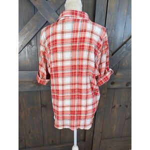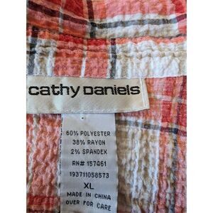 Cathy Daniels Casual Button-Down Shirt Women's XL White Red Plaid Polyblend