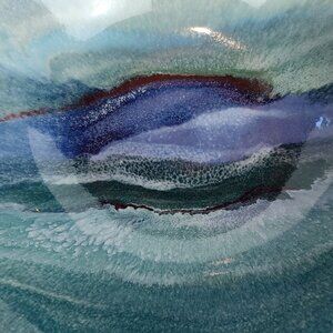 Beautiful blue, turquoise, purple interior glaze pattern.