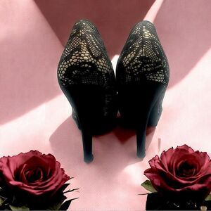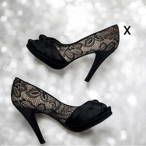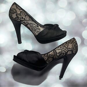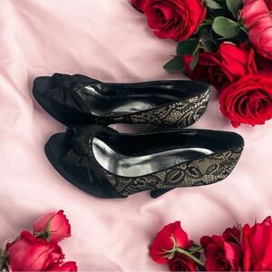 Cathy Jean Black Stilettos, High Heels with Bow & Lacey Accents l 6.5 l VGUC